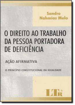 Produto sob Encomenda A presente obra tem como cerne o estudo do direito ao trabalho da pessoa portadora de deficiência no ordenamento jurídico brasileiro e sua eficácia no meio social, com base no princípio constitucional da igualdade, tendo ênfase na chamada Ação Afirmativa. O texto evidencia que a eficácia do direito ao trabalho das pessoas portadoras de deficiência não é alcançada por meio de medidas isoladas (cotas de emprego), demandando, para tanto, medidas positivas complementares.