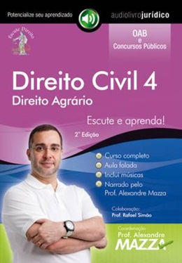 Neste Livro do Direito Civil Volume IV você encontrará os seguintes temas como: - Abertura; - Apresentação; - Conceito de Direito Agrário; Normas Públicas e Normas Privadas; Atividade Agrária; - Música: Risco Agrário; - Estrutura Agrária e Fundo Agrário; Função Social da Propriedade; Constituições Anteriores; - Autonomia do Direito Agrário; Fontes, Estatuto da Terra; Imóvel Rural; Questão do IPTU e do ITR;Propriedade Familiar; Módulo Rural; Módulo Fiscal; Minifúndio; Latifúndio; Música: Imóvel Rural; Empresa Rural; Parceleiro; Cooperativa Integral de Reforma Agrária; Colonização; Terras Devolutas; Faixa de Fronteira; Fração Mínima de Parcelamento; Exceções; Aquisição de Imóvel Rural por Estrangeiros; Aquisição de Imóvel por Pessoa Jurídica Estrangeira; Reforma Agrária e Desapropriação; Desapropriação; Competência para Legislar; Competência para Desapropriar; Foro Competente; Música Foro da Desapropriação; Procedimento Expropriatório; Aspectos da Justa Indenização; Propriedades Insuscetíveis de Desapropriação por Reforma Agrária; Finalidades da Desapropriação; Contratos Agrários; Arrendamento Rural; Parceria Rural; Todas as Músicas e Encerramento.