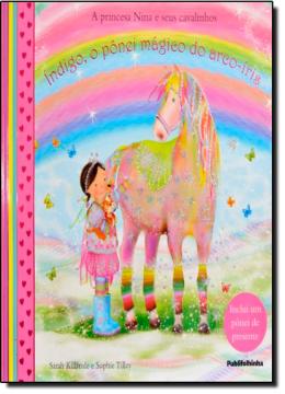 Nina é uma princesa delicada, corajosa e que ama seus pôneis mágicos e seu gatinho Faísca. Nesta aventura da coleção. A Princesa Nina e Seus Cavalinhos, o pônei Índigo leva a princesa para um jardim no fim do arco-íris. Como o lugar estava cinza e apagado, Nina parte em busca das pedras preciosas que vão trazer todas as cores e a alegria de volta. A pequena leitora pode acompanhar essa história cheia de encantos com o pônei de papel que vai encontrar no fim do livro.