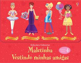 Esta linda maletinha traz quatro belos livrinhos da coleção Vestindo minhas amigas. Os livrinhos são menores do que os da versão original da série Vestindo minhas amigas. O que os faz uma bela opção para presentear e colecionar. Cole os adesivos e vista as dançarinas, as estrelas de cinema e as amigas para as mais incríveis festas. A maletinha contém os livros Vestindo minhas amigas Dançarinas, Meninas Famosas, Estrelas de Cinema e Festas Incríveis.