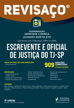 REVISAÇO é a consagrada coleção de questões comentadas da Editora Juspodivm. Com cuidado, pensamos num formato que fosse além dos comentários das questões. Algo que realmente pudesse ajudar o aluno no estudo para concursos ou Exames da Ordem, especialmente na revisão final. Para isso, os livros da Coleção são estruturados didaticamente da seguinte forma: - Questões divididas por matéria e assunto, comentadas assertiva por assertiva, item por item, demonstrando tanto o que está certo como o que está errado na questão - Sempre que possível há uma nota do autor em cada questão trazendo comentários complementares do assunto abordado no exercício Ao final das disciplinas apresentamos: - Dicas de estudo, que funcionam como verdadeiro resumo da matéria; - Súmulas dos Tribunais Superiores; - Informativos do STF, STJ e TST; - Orientações Jurisprudenciais. A ideia, portanto, é apresentar a prática do concurso ou Exame da Ordem (questões), a doutrina para estudo (dicas) e a jurisprudência (súmulas e informativos), formando a tríade necessária para uma revisão (verdadeiro REVISAÇO!) rumo ao sucesso na aprovação. Vários livros compõem a Coleção e, para todos, chamamos grandes nomes, professores experientes, profissionais de destaque e especialistas em cada área para que organizassem as obras e comentassem as questões.