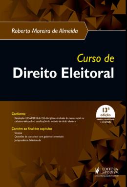 CONFORME: - Resolução 23.562/2018 do TSE-disciplina a inclusão do nome social no cadastro eleitoral e a atualização do modelo de título eleitoral O LEITOR ENCONTRARÁ AO FINAL DOS CAPÍTULOS: - Sinopse - Questões de concursos com gabarito comentado - Jurisprudência Selecionada POR QUE ESCOLHER O CURSO DE DIREITO ELEITORAL? Este trabalho é resultado da atividade acadêmica e do material utilizado pelo autor para ministrar aulas ao longo de vários anos em cursos de graduação, pós-graduação e preparatórios para concursos na área jurídica. Destina-se a obra a servir aos operadores do direito, aos estudantes, aos candidatos a concursos públicos e à comunidade jurídica, bem como aos brasileiros em geral, como instrumento de pesquisa e objeto facilitador do estudo dos principais institutos jurídicos relacionados ao Direito Eleitoral. Em cada capítulo, após tratar da matéria, o autor insere sinopse e exercícios de fixação, na sua maio-ria questões extraídas de concursos públicos e exames da OAB, com as respectivas respostas. O objetivo é que o leitor possa aferir a compreensão do assunto ministrado.