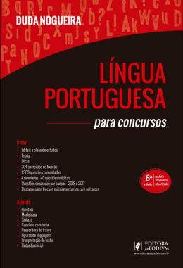O LEITOR ENCONTRARÁ: - Editais e plano de estudos - Teoria - Dicas - 304 exercícios de fixação - 1.309 questões comentadas - 4 simulados - 40 questões inéditas - Questões separadas por bancas - 2018 e 2017 - Destaques nos trechos mais importantes com outra cor CONHEÇA A ESTRUTURA DA OBRA: - Fonética - Morfologia - Sintaxe - Coesão e coerência - Reescritura de frases - Figuras de linguagem - Interpretação de texto - Redação oficial
