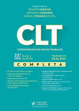 O LEITOR ENCONTRARÁ: - CF, ADCT e CPC/2015 na íntegra - Legislação Complementar em ordem cronológica - Regimento Interno do TST - Súmulas, Orientações Jurisprudenciais e Precedentes Normativos - Índice Alfabético-Remissivo Geral da obra CONFORME: - Decreto 9.700/2019: Altera o Regulamento da Previdência Social - Lei 13.806/2019: Modifica a Lei do Cooperativismo - Lei 13.793/2019: Altera o CPC - MP 871/2019: Modifica as Leis 8.213/1991, 8.212/1991 e 8.009/1990 - Lei 13.767/2018: Altera a CLT - Decreto 9.499/2018: Promulga o Mecanismo para o Exercício Profissional Temporário POR QUE ESCOLHER A CLT - CONSOLIDAÇÃO DAS LEIS DO TRABALHO? Elaborado por profissionais com larga experiência no magistério e em cursos preparatórios para a OAB, este livro conjuga praticidade e objetividade em um cuidadoso trabalho de pesquisa jurídica. A obra, que se revelou de grande utilidade na preparação para o exame da OAB em matéria trabalhista, mostrou-se, também, ferramenta fundamental à atuação dos profissionais do Direito. Traz seu conteúdo rigorosamente revisto, atualizado e estrategicamente estruturado, a saber: - CF e ADCT na íntegra; ECs sobre as matérias trabalhista e previdenciária; - CLT na íntegra, com a transcrição dos textos das notas remissivas; - CPC/2015 na íntegra; - Legislação Complementar selecionada e estruturada em ordem cronológica, com as leis mais relevantes acompanhadas dos seus respectivos decretos regulamentadores; - Regimento Interno do TST; - Súmulas V