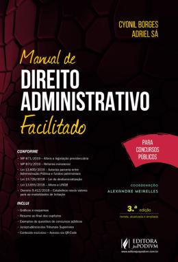 CONFORME: - MP 871/2019 - Altera a legislação previdenciária - MP 870/2019 - Reforma ministerial - Lei 13.800/2019 - Autoriza parceria entre Administração Pública e fundos patrimoniais - Lei 13.726/2018 - Lei da desburocratização - Lei 13.655/2018 - Altera a LINDB - Decreto 9.412/2018 - Estabelece novos valores para as modalidades de licitação O LEITOR ENCONTRARÁ: - Gráficos e esquemas - Resumo ao final dos capítulos - Exemplos de questões de concursos públicos - Jurisprudência dos Tribunais Superiores - Conteúdo exclusivo - Acesso via QR-Code POR QUE ESCOLHER O MANUAL DE DIREITO ADMINISTRATIVO FACILITADO? O Direito Administrativo não é, entre os ramos, o mais digerível para efeito de concursos públicos. Primeiro, em razão de sua pouca praticidade: é um Direito da Administração. Nós, administrados, enxergamos os conceitos relacionados a esse ramo de forma bastante abstrata (o que é uma Agência Reguladora? O que significa a sigla DAS?). Segundo, porque sua codificação, somente na seara federal, é vasta, compreendendo facilmente mais de 10 mil artigos. Isso dificulta muito a sistematização do Direito Administrativo, abrindo a possibilidade das mais variadas posições doutrinárias, o que torna o estudo "penoso", especialmente em razão da falta de indicação bibliográfica nos editais de concursos públicos. Diante desse cenário, buscando ajudar o concursando a trilhar um caminho certeiro rumo à sua aprovação, formulamos nosso Manual de Direito Administrativo Facilitado para con