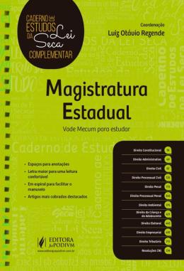 POR QUE ESCOLHER O CADERNO DE ESTUDOS DA LEI SECA COMPLEMENTAR? - Desenhado para o estudo da Lei Seca - Direcionado para sua carreira - Seleção elaborada por especialistas - Com espiral para facilitar o manuseio - Tarjas laterais facilitadoras de pesquisa - Espaços para anotações - Letra maior para uma leitura confortável - Atualização periódica gratuita da legislação pelo site da Editora até 31/12/2019 CONHEÇA A ESTRUTURA DO CADERNO DE ESTUDOS DE LEI SECA COMPLEMENTAR: - Direito Constitucional - Direito Administrativo - Direito Civil - Direito Processual Civil - Direito Penal - Direito Processual Penal - Direito Ambiental - Direito Eleitoral - Direito Empresarial - Direito Tributário - Resoluções CNJ O LEITOR ENCONTRARÁ: - LC 35/1979 - Lei Orgânica da Magistratura Nacional - Lei 9.507/1997 - Habeas Data - Lei 5.478/1968 - Lei de alimentos - Lei 8.009/1990 - Bem de Família - Lei 8.245/1991 -Locação de imóveis urbanos - Lei 1.060/1950 - Assistência judiciária - Lei 4.717/1965 - Ação popular - Lei 10.259/2001 - Lei do Juizado Especial Federal - Lei 8.072/90 - Lei dos Crimes Hediondos - Lei 8.137/90 - Lei dos Crimes contra a Ordem Tributária - Lei 10.826/2003 - Estatuto do Desarmamento - Lei 12.984/14 - Portador de HIV - Lei 13.344/2016 - Tráfico de pessoas - Lei 7.210/1984 - Lei de Execução Penal - Lei 12.037/09 - Lei de Identificação Criminal - Lei 12.846/13 - Lei Anticorrupção - LC 140/11 - Lei de Atuação Administrativa Cooper