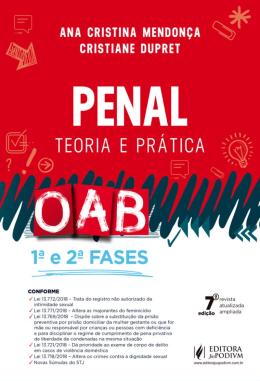 CONFORME: - Lei 13.772/2018 - Trata do registro não autorizado da intimidade sexual - Lei 13.771/2018 - Altera as majorantes do feminicídio - Lei 13.769/2018 - Dispõe sobre a substituição da prisão preventiva por prisão domiciliar da mulher gestante ou que for mãe ou responsável por crianças ou pessoas com deficiência e para disciplinar o regime de cumprimento de pena privativa de liberdade de condenadas na mesma situação - Lei 13.721/2018 - Dá prioridade ao exame de corpo de delito em casos de violência doméstica - Lei 13.718/2018 - Altera os crimes contra a dignidade sexual - Novas Súmulas do STJ POR QUE ESCOLHER O DIREITO PENAL - PRÁTICA PARA 1ª E 2ª FASES DA OAB? Esta obra foi carinhosamente elaborada para auxiliar o desenvolvimento do raciocínio jurídico, capacitando o bacharel em Direito para a prova de ingresso aos quadros da Ordem dos Advogados do Brasil (OAB). O livro é o resultado de criteriosa análise de todos os Exames anteriores e possui uma compilação tanto teórica quanto prática do Direito Material e Processual Penal, questões práticas, modelos de peças processuais, além de trazer diversas questões aplicadas e resolvidas dos últimos exames da OAB, prestigiando com destaque as principais peças processuais que podem ser cobradas na 2ª fase. É uma ferramenta imprescindível e coadjuvante aos estudos, não só para quem objetiva o credenciamento à advocacia, como também para a formação prática para a militância penal. Isso porque ensina o candidato a identificar e a
