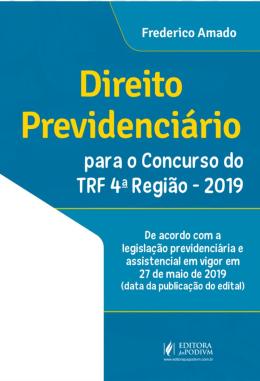 IDEAL PARA OS CARGOS: - Analista Judiciário - Área Judiciária - Técnico Judiciário - Área Administrativa CONFORME: - A legislação previdenciária e assistencial em vigor em 27 de maio de 2019 (data da publicação do edital) POR QUE ESCOLHER O LIVRO DIREITO PREVIDENCIÁRIO PARA O CONCURSO DO TRF/4? Construímos esta obra específica para atender aos candidatos ao cargo de Analista e Técnico Judiciário do TRF da 4ª Região na disciplina de Direito Previdenciário e Noções de Direito Previdenciário, cobrindo todos os temas do edital. Está atualizada até a data de publicação do edital, pois alterações normativas posteriores às regras do certame não serão cobradas neste concurso de 2019, estando de acordo com o texto original da MP 871/2019 que vigorava em 27/5/2019. A obra tem ótima densidade e farta jurisprudência, tendo como principal objetivo a preparação do candidato para o Estudo de Caso em Direito Previdenciário para o cargo de Analista Judiciário, complementando o Curso EAD de casos previdenciários oferecido pelo autor no portal do Especcial Jus (www.especcialjus.com.br). Para os candidatos que irão se preparar para o cargo de Técnico Judiciário, os temas dos Capítulos 11 e 12 desta obra não fazem parte do programa (RPPS e RPC), assim como a parte da Lei 8.742/93 não foi prevista. Bom estudo! Fechamento: 10.06.19