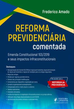 ontéudo conforme a MP 905/2019 - Conforme a Reforma Constitucional da Previdência, EC 103/2019 O LEITOR ENCONTRARÁ: - Reorganização da Emenda 103/2019 por regras permanentes, regras de transição às regras permanentes e regras de transição para os antigos segurados - Divisão por regimes previdenciários - Síntese das principais modificações - Exemplos simulados - Análise de impactos na legislação infraconstitucional e na jurisprudência CONTÉM: - Sumário organizacional autoexplicativo - Mapa dos artigos - Comentários por dispositivo organizado por tema - Tabelas explicativas - Comparação entre o texto atual e o anterior - Indicação dos artigos desatualizados na Lei 8.213/91 POR QUE ESCOLHER O LIVRO REFORMA PREVIDENCIÁRIA COMENTADA? Esta obra, intitulada "Reforma previdenciária comentada - Emenda 103/2019 e seus impactos infraconstitucionais", objetiva analisar todas as mudanças constitucionais no Direito da Seguridade Social, especialmente no Direito Previdenciário, através da novel alteração constitucional. Por questões de didática, optei por organizar a obra pela análise dos dispositivos constitucionais inseridos, modificados e suprimidos, sempre traçando um paralelo entre o dispositivo anterior e o atual, para em seguida abordar o conteúdo da inovação constitucional e os seus efeitos na legislação infraconstitucional. Não obstante isto, simultaneamente busquei uma organização temática da obra que é dividida em três grandes partes: - Par