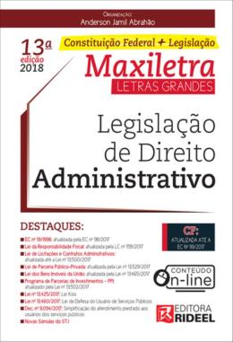A Editora Rideel reformulou o projeto gráfico que visa proporcionar uma leitura mais agradável com uma letra 50% maior do que a edição anterior. A comparação identificou um aumento que varia conforme seções do texto, sendo o mínimo de 29% e máximo de 65%. Além da ampliação da letra, a fonte também foi trocada e está mais legível, o que poderá auxiliar àqueles que precisam estudar por muito tempo e fazer pesquisas rápidas. Contém em sua estrutura- Legislação e CF. Destaques da edição- - EC no 19/1998- atualizada pela EC no 98/2017 - Lei da Responsabilidade Fiscal- atualizada pela LC no 159/2017 - Lei de Licitações e Contratos Administrativos- atualizada até a Lei no 13.500/2017 - Lei de Parceria Público-Privada- atualizada pela Lei no 13.529/2017 - Lei dos Bens Imóveis da União- atualizada pela Lei no 13.465/2017 - Programa de Parcerias de Investimentos - PPI- atualizado pela Lei no 13.502/2017 - Lei no 13.425/2017- Lei Kiss - Lei no 13.460/2017- Lei de Defesa do Usuário de Serviços Públicos - Dec. no 9.094/2017- Simplificação do atendimento prestado aos usuários dos serviços públicos - Novas Súmulas do STJ