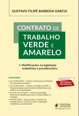 Conforme a MP 905/2019 - Modificações na legislação trabalhista e previdenciária. Conforme o conteúdo conforma a Reforma Constitucional da Previdência, EC 103/2019. O LEITOR ENCONTRARÁ: Tudo o que é preciso saber sobre o Contrato de Trabalho Verde e Amarelo: - Destinatários - Direitos aplicáveis - Prazo de contratação - Pagamentos antecipados - Jornada de trabalho - Isenções - Extinção do contrato - Extinção de Contribuição Social - Segurança e saúde no trabalho - Inspeção do trabalho E muito mais!!! CONFORME: - Lei 13.874/2019 – Institui a Declaração de Direitos de Liberdade Econômica. - Lei 13.846/2019 – Institui, no âmbito do INSS, o Programa Especial para Análise de Benefícios com Indícios de Irregularidade. - Decreto 10.110/2019 – Institui a Estratégia Nacional de Qualificação para a Produtividade e o Emprego. - MP 905/2019 – Dispõe sobre o contrato de trabalho verde e amarelo e altera a legislação trabalhista e previdenciária POR QUE ESCOLHER LIVRO CONTRATO DE TRABALHO VERDE E AMARELO? A Medida Provisória 905, de 11 de novembro de 2019, publicada no Diário Oficial da União, de 12.11.2019, institui o contrato de trabalho verde e amarelo, altera a legislação trabalhista, e dá outras providências. Foram feitas diversas modificações na Consolidação das Leis do Trabalho e em outros diplomas legais, aproximando-se de uma nova reforma trabalhista. Mesmo a legislação previdenciária foi alterada, resultando em ampla reformulação do sistema jurí