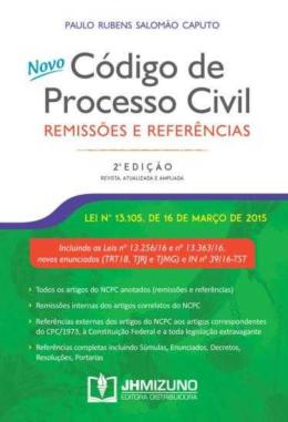 Produto sob Encomenda O presente Código de Processo Civil (Lei nº 13.105, de 16 de março de 2015 - Novo CPC; incluindo a Lei n° 13.256, de 4 de fevereiro de 2016) contém Remissões e Referências, consistindo aquelas em notas que remetem o leitor do artigo no qual se encontra para outro (s) artigo (s) com o (s) qual (is) possa (m) ter relação lógico-sistemática-temática, e estas são anotações consistentes na relação externa do artigo relativamente ao CPC/1973, e ao mais da Legislação, desde a Constituição até a legislação esparsa (utilizando-se do mesmo critério lógico-sistemático-temático). As Referências ainda são acrescidas de Regimentos de Tribunais, Súmulas, Resoluções, Decretos, Portarias e Enunciados, de modo a facilitar não só o manuseio, mas o estudo e a pesquisa pelos leitores.