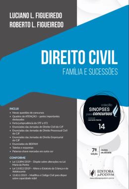 coleção das sinopses é de qualidade incontestável. Conseguem, em uma mesma obra, reunir aquilo que é importante, de forma sintética, e eficiente. Cliente: Marcos Antonio Ramos de Sousa Oliveira. 21/03/2019. O LEITOR ENCONTRARÁ: - Doutrina otimizada para concursos - Novas questões de concursos no decorrer do texto - Quadros de ATENÇÃO – partes importantes destacadas - Farta jurisprudência do STF e STJ - Tabelas e esquemas - Dicas para as provas no decorrer do texto - Palavras-chave marcadas em outra cor CONFORME: - Lei 13.894/2019 – Dispõe sobre alterações na Lei Maria da Penha - Lei 13.812/2019 – Altera o Estatuto da Criança e do Adolescente - Lei 13.811/2019 – Modifica o Código Civil para dispor sobre capacidade núbil - Enunciados das Jornadas de Direito Civil do CJF - Enunciados das Jornadas de Direito Processual Civil do CJF - Enunciados das Jornadas de Direito Empresarial do CJF - Enunciados do IBDFAM CONHEÇA A COLEÇÃO: A Coleção Sinopses para Concursos tem por finalidade a preparação para concursos públicos de modo prático, sistematizado e objetivo. Foram separadas as principais matérias constantes nos editais e chamados professores especializados em preparação de concursos a fim de elaborarem, de forma didática, o material necessário para a aprovação em concursos. Diferentemente de outras sinopses/resumos, preocupamos em apresentar ao leitor o entendimento do STF e do STJ sobre os principais pontos, além de abordar temas tratados em ma