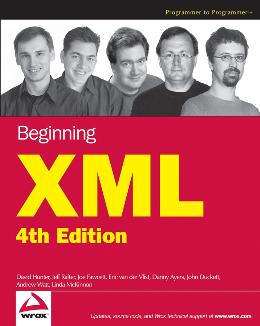 When the first edition of this book was written, XML was a relatively new language but already gaining ground fast and becoming more and more widely used in a vast range of applications. By the time of the second edition, XML had already proven itself to be more than a passing fad, and was in fact being used throughout the industry for an incredibly wide range of uses. With the third edition, it was clear that XML was a mature technology, but more important, it became evident that the XML landscape was dividing into several areas of expertise. Now in this edition, we needed to categorize the increasing number of specifications surrounding XML, which either use XML or provide functionality in addition to the XML core specification. So what is XML? It´s a markup language, used to describe the structure of data in meaningful ways. Anywhere that data is input/output, stored, or transmitted from one place to another, is a potential fit for XML´s capabilities. Perhaps the most well-known applications are web-related (especially with the latest developments in handheld web access—for which some of the technology is XML-based). However, there are many other non-web-based applications for which XML is useful—for example, as a replacement for (or to complement) traditional databases, or for the transfer of financial information between businesses. News organizations, along with individuals, have also been using XML to distribute syndicated news stories and blog entries.