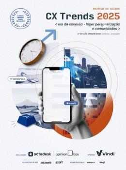 Descubra as principais tendências em experiência do cliente (CX) com este anuário indispensável para gestores. Lançado pela Editora Europa em janeiro de 2025, o CX Trends 2025 aborda a era da conexão, hiperpersonalização e o impacto das comunidades nas estratégias empresariais. Uma publicação especial em comemoração às dez edições do anuário, desenvolvida em parceria com a Octadesk e o Opinion Box, líderes em tecnologia e insights de mercado. Ideal para profissionais que buscam inovação, autonomia e previsibilidade em suas operações, este guia traz dados, análises e soluções para transformar a relação entre empresas e clientes. Obtenha o suporte necessário para tomar decisões estratégicas baseadas em inteligência de mercado. Não perca a oportunidade de estar à frente das mudanças!