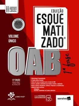 Produto sob Encomenda A obra “OAB 1ª Fase – Volume Único”, da Coleção Esquematizado, é fonte segura de estudo para a aprovação no Exame de Ordem. A obra, coordenada pelo Professor Lenza, conta com autores experientes em cursos preparatórios. • Metodologia Esquematizado• Projeto gráfico inovador • Dicas de como se preparar para o Exame de Ordem • Legislação e jurisprudência atualizadas • Todas as matérias obrigatórias • Mais de 1.900 questões comentadas: exames recentes no livro impresso e o restante online.