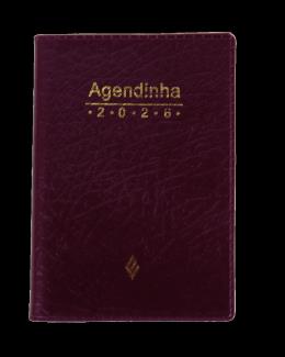 Produto sob Encomenda Em formato pocket, fácil de levar na bolsa, no bolso da camisa ou da calça, a Agendinha contém indicações das leituras bíblicas da liturgia diária e bonitos pensamentos. Acabamento em couro sintético. Disponível nas cores preta, marrom, azul e vinho.
