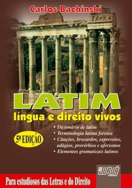 Neste volume:Alfabeto Latino - Escrita e PronúnciaFUNÇÕES em Português x CASOS em LatimDeclinações LatinasNominativo / Predicativo do sujeitoVerbos intransitivosGenitivoAcusativoDativoAblativoVocativoAdjetivosAdvérbioPreposiçãoConjunçãoInterjeiçãoLinguagem coloquial latinaExercíciosTextos para leitura e interpretaçãoO latim, a língua latina e o direito romano vistos por renomados juristas (= excertos)Terminologia latina forense: textos, citações, brocardos, expressões, adágios e aforismos jurídicos, por assuntosCitações, brocardos, expressões, adágios, provérbios e aforismos latinos aplicáveis - via de regra - no mundo jurídicoAssuntos (= títulos) para pesquisas e trabalhos