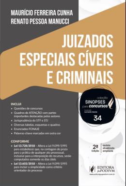 LEITOR ENCONTRARÁ: - Questões de concursos no decorrer do texto - Enunciados FONAJE - Jurisprudência do STF e STJ - Quadros de ATENÇÃO com partes importantes destacadas pelos autores - Diversas tabelas, esquemas e quadros - Dicas para as provas no decorrer do texto - Palavras-chave marcadas em outra cor CONFORME: - Lei 13.728/2018 – Altera a Lei 9.099/1995 para estabelecer que, na contagem de prazo para a prática de qualquer ato processual, inclusive para a interposição de recursos, serão computados somente os dias úteis - Lei 13.603/2018 – Altera a Lei 9.099/1995 para incluir a simplicidade como critério orientador do processo CONHEÇA A COLEÇÃO: A Coleção Sinopses para Concursos tem por finalidade a preparação para concursos públicos de modo prático, sistematizado e objetivo. Foram separadas as principais matérias constantes nos editais e chamados professores especializados em preparação de concursos a fim de elaborarem, de forma didática, o material necessário para a aprovação em concursos. Diferentemente de outras sinopses/resumos, preocupamos em apresentar ao leitor o entendimento do STF e do STJ sobre os principais pontos, além de abordar temas tratados em manuais e livros mais densos. Assim, ao mesmo tempo em que o leitor encontrará um livro sistematizado e objetivo, também terá acesso a temas atuais e entendimentos jurisprudenciais. Dentro da metodologia que entendemos ser a mais apropriada para a preparação nas provas, demos destaques (em ou
