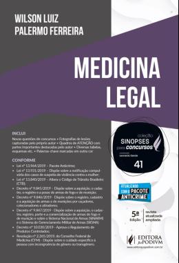 LEITOR ENCONTRARÁ: - Doutrina otimizada para concursos - Novas questões de concursos no decorrer do texto - Fotografias de lesões capturadas pelo próprio autor - Quadros de ATENÇÃO com partes importantes destacadas pelo autor - Diversas tabelas, esquemas etc. - Dicas para as provas no decorrer do texto - Palavras-chave marcadas em outra cor CONFORME: - Lei nº 13.964/2019 – Pacote Anticrime; - Lei nº 13.931/2019 – Dispõe sobre a notificação compulsória dos casos de suspeita de violência contra a mulher; - Lei nº 13.840/2019 – Altera o Código de Trânsito Brasileiro (CTB); - Decreto nº 9.845/2019 – Dispõe sobre a aquisição, o cadastro, o registro e a posse de armas de fogo e de munição; - Decreto nº 9.846/2019 - Dispõe sobre o registro, cadastro e a aquisição de armas e de munições por caçadores, colecionadores e atiradores; - Decreto nº 9.847/2019 - Dispõe sobre a aquisição, o cadastro, registro, porte e a comercialização de armas de fogo e de munição e sobre o Sistema Nacional de Armas (SINARM) e o Sistema de Gerenciamento Militar de Armas (SIGMA) - Decreto nº 10.030/2019 - Aprova o Regulamento de Produtos Controlados; - Resolução nº 2.265/2019, do Conselho Federal de Medicina (CFM) - Dispõe sobre o cuidado específico à pessoa com incongruência de gênero ou transgênero. CONHEÇA A COLEÇÃO: A Coleção Sinopses para Concursos tem por finalidade a preparação para concursos públicos de modo prático, sistematizado e objetivo. Foram separadas as principais