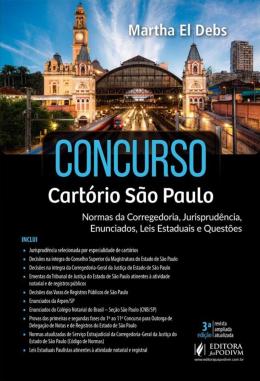 LEITOR ENCONTRARÁ: - Jurisprudência selecionada por especialidade de cartórios - Decisões na íntegra do Conselho Superior da Magistratura do Estado de São Paulo - Decisões na íntegra da Corregedoria-Geral da Justiça do Estado de São Paulo - Ementas do Tribunal de Justiça do Estado de São Paulo atinentes à atividade notarial e de registros públicos - Decisões das Varas de Registros Públicos de São Paulo - Enunciados da Arpen/SP - Enunciados do Colégio Notarial do Brasil – Seção São Paulo (CNB/SP) - Normas atualizadas de Serviço Extrajudicial da Corregedoria-Geral da Justiça do Estado de São Paulo (Código de Normas) - Leis Estaduais Paulistas atinentes à atividade notarial e registral O LEITOR TAMBÉM ENCONTRARÁ: Provas das primeiras e segundas fases do 1º ao 11º Concurso para Outorga de Delegação de Notas e de Registros do Estado de São Paulo CONTÉM: - Dois tomos - Formato diferenciado para facilitar a leitura: página maior e texto em duas colunas POR QUE ESCOLHER O LIVRO CONCURSO CARTÓRIO SÃO PAULO? O presente trabalho foi idealizado para auxiliar o candidato a alcançar o seu grande objetivo: lograr êxito no concurso de cartório (Outorga de Delegação de Notas e de Registros) do Estado de São Paulo, bem como ser útil no dia a dia da atividade. Tomou-se em conta a consabida necessidade de agregação de material singular, normativo de índole estadual, dada sua relevância e valia por ser muito cobr
