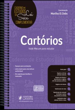 OR QUE ESCOLHER O CADERNO DE ESTUDOS DA LEI SECA COMPLEMENTAR? - Direcionado para sua carreira - Seleção elaborada por especialistas - Espaços para anotações - Letra maior para uma leitura confortável - Em espiral para facilitar o manuseio - Atualização periódica gratuita da legislação pelo site da Editora até 31/07/2020 MARQUE, ESCREVA, COLE E USE DO SEU JEITO! Imagem meramente ilustrativa, seu conteúdo não representa com exatidão o conteúdo da obra. Verifique a legislação presente no sumário. CONHEÇA A ESTRUTURA DO CADERNO DE ESTUDOS DE LEI SECA: - Parte geral - Registro civil das pessoas naturais - Registro de títulos e documentos e registro civil das pessoas jurídicas - Registro de imóveis - Tabelionato de notas - Tabelionato de protesto de títulos e outros documentos de dívida - Legislação sobre cédulas, letras e notas CONTÉM: Lei nº 6.015/1973 Lei nº 8.935/1994 Lei nº 10.169/2000 Lei nº 13.874/2019 Resolução CNJ nº 228/2016 Provimento CNJ nº 82/2019 Provimento CNJ nº 83/2019 Provimento CNJ nº 85/2019 Provimento CNJ nº 86/2019 Provimento CNJ nº 87/2019 Provimento CNJ nº 88/2019 Provimento CNJ nº 89/2019 Recomendação CNJ nº 40/2019 Recomendação CNJ nº 41/2019 Recomendação CNJ nº 43/2019 Decreto nº 9.929/2019 Decreto nº 10.063/2019 Resolução CNJ nº 295/2019 COMBINAÇÃO PERFEITA: Os Cadernos de Estudo da Lei Complem
