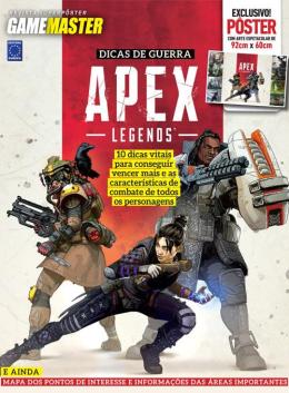Produto sob Encomenda PÔSTER EXCLUSIVO COM ARTE ESPETACULAR DE 92CM X 60CM Dicas de Guerra: Apex Legends 10 dicas vitais para conseguir vencer mais e as características de combate de todos os personagens. E ainda: Mapa dos pontos de interesse e informações das áreas importantes.