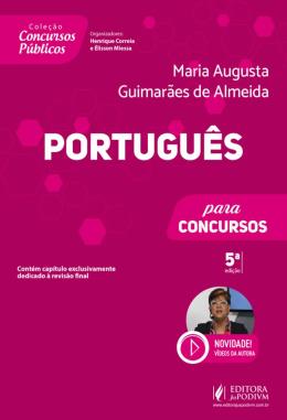 Contém capítulo exclusivamente dedicado à revisão final! POR QUE ESCOLHER O LIVRO PORTUGUÊS PARA CONCURSOS? Esta obra, de linguagem simples e objetiva, traz conteúdos da Língua Portuguesa sempre cobrados em todos os certames. Fruto de anos de trabalho com alunos que estudam para diversos concursos, dos questionamentos, das dúvidas surgidas ao longo das inúmeras aulas, a obra se mostra como uma conversa informal, em que se explanam todos os conteúdos como se estivesse em uma sala de aula. De assuntos considerados básicos a temas mais complexos, todos são abordados teoricamente e sedimentados por meio de questões de provas anteriores. Abordam-se assuntos como: acentuação, uso do acento grave, regência verbal e nominal, vozes verbais, valores de QUE e SE, classes gramaticais, conjugação verbal, concordância verbal e nominal, pontuação, análise sintática, período e orações, semântica das conjunções, tipologia textual, diferentes formas de discurso, redação oficial etc. A obra apresenta os assuntos, seguindo uma ordem na evolução do domínio dos temas. É interessante, portanto, que se resolvam as questões disponibilizadas ao final de cada capítulo para que se avalie a evolução e o índice de erros em cada assunto. Disponibilizam-se também vídeos com dicas sobre o tema abordado. Esta obra é, portanto, para você que precisa estudar a Língua para alcançar a tão valiosa segurança ao resolver as questões de qualquer concurso. Desafie-se! Você pode! A Autora