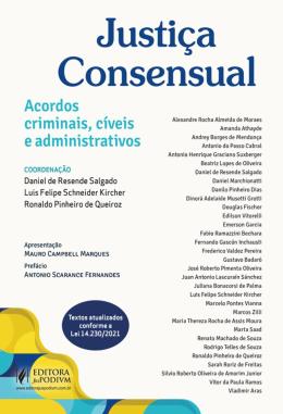 Apresentação de MAURO CAMPBELL MARQUES Prefácio de ANTONIO SCARANCE FERNANDES POR QUE ESCOLHER O LIVRO JUSTIÇA CONSENSUAL ACORDOS PENAIS, CÍVEIS E ADMINISTRATIVO? O tema central do livro não poderia ser mais atual e instigante, ao tratar no âmbito da Justiça Negocial das variantes teóricas e práticas presentes nos acordos firmados nos âmbitos criminal, cível e administrativo. A utilização de instrumentos consensuais de solução de conflitos no direito sancionador, seja na esfera penal, cível ou administrativa, tem se mostrado como um dos grandes desafios jurídicos da atualidade. O tema é objeto de importantes modificações legislativas na última década e recentes novidades foram introduzidas no sistema de soluções consensuais, essencialmente contidas no denominado “Pacote Anticrime”. O necessário equilíbrio a ser estabelecido na realização dos acordos entre as partes envolvidas – autoridades públicas, colaboradores e acusados –, em busca da melhor solução que atenda ao interesse público e ao devido processo legal, é foco de intenso debate e construção no âmbito jurisprudencial e doutrinário. A obra também deve ser louvada por reunir autoras e autores que ostentam, além das características essenciais para o desenvolvimento dos assuntos abordados, intensa vivência profissional no exercício de funções diretamente relacionadas aos temas e experiência acadêmica, resultando avaliações profundas e pertinentes nos artigos. A estrutura do livro é dividida em dois grandes grupos de assun