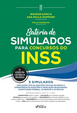Sobre a obra Bateria de Simulados para Concursos do INSS - 1ª ED - 2022 Quer passar no INSS? Então faça simulados antes da prova! Você terá os seguintes ganhos ao fazer os simulados desse livro: • aprenderá a administrar melhor o tempo; • aprenderá como ser mais ágil para responder questões; • aprenderá técnicas para acertar mais questões a cada prova; • descobrirá onde estão os seus erros e o que precisa estudar mais; • descobrirá onde estão os seus erros de interpretação e de escolha da alternativa correta; • ficará mais calmo para o dia da prova, pois terá simulado diversas vezes esse momento e suas mente e emoções estarão mais preparadas. Mas não basta fazer simulados. É preciso fazer com o material correto. Existem técnicas para treinar via simulados e esse livro tem tudo o que você precisa para fazer isso da melhor maneira. Confira os principais pontos para estudar por meio de simulados: 1º) Você precisa usar como simulado as questões reais e completas de provas anteriores do INSS. E isso é o que fazemos neste livro. 2º) Você precisa resolver as questões como se você estivesse na prova. Neste livro as questões vêm dispostas como na prova, e depois você tem uma folha de respostas para fazer o mesmo que faria nesta. Sem contar que os comentários às questões e os gabaritos não ficam na mesma página do simulado, então você só tem a sua mente mesmo para resolver as questões, como se estivesse na hora da prova. 3º) Você precisa ter um feedback de ca