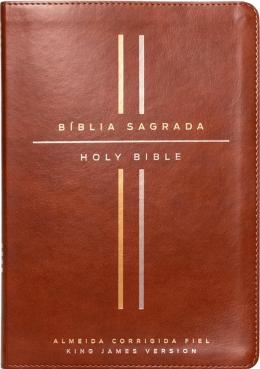 LEIA, ESTUDE E COMPARE AS PASSAGENS BÍBLICAS EM DUAS DAS VERSÕES MAIS CLÁSSICAS DA HISTÓRIA. A Bíblia Bilíngue ACF/KJV apresenta, lado a lado, o texto na íntegra de duas das versões bíblicas mais reconhecidas por sua fidelidade aos originais: a Almeida Corrigida Fiel, que preserva toda a qualidade da fiel tradução de João Ferreira de Almeida, e a King James Version, a icônica versão em inglês com séculos de tradição e que ajudou a moldar a língua inglesa. Diagramada em duas colunas, essa Bíblia permite ao leitor o contato simultâneo com o texto bíblico em português e em inglês, sem perder o conforto na leitura. Ela é ideal tanto para estudo pessoal como para facilitar a comunicação e interpretação entre os dois idiomas. Principais características da Bíblia Bilíngue ACF/KJV:Texto bíblico na íntegra: Almeida Corrigida Fiel (português) e King James Version (inglês) Diagramação em duas colunas para rápida comparação entre os textos Versículos em português e inglês sincronizados sempre na mesma linha, a fim de facilitar a comparação entre as versões Fonte Leitura Perfeita: uma tipologia exclusiva que integra os melhores avanços em tipografia de Bíblias modernas. Características: Texto na tradução KJV (King James Version) e ACF (Almeida Corrigida Fiel) Capa em Couro-soft (PU) Aplicação de hotstamping prata e dourado na capa Fitilho colorido.